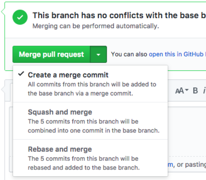 GitHub에서 Pull Request를 승인할 때 선택하는 병합 방식은